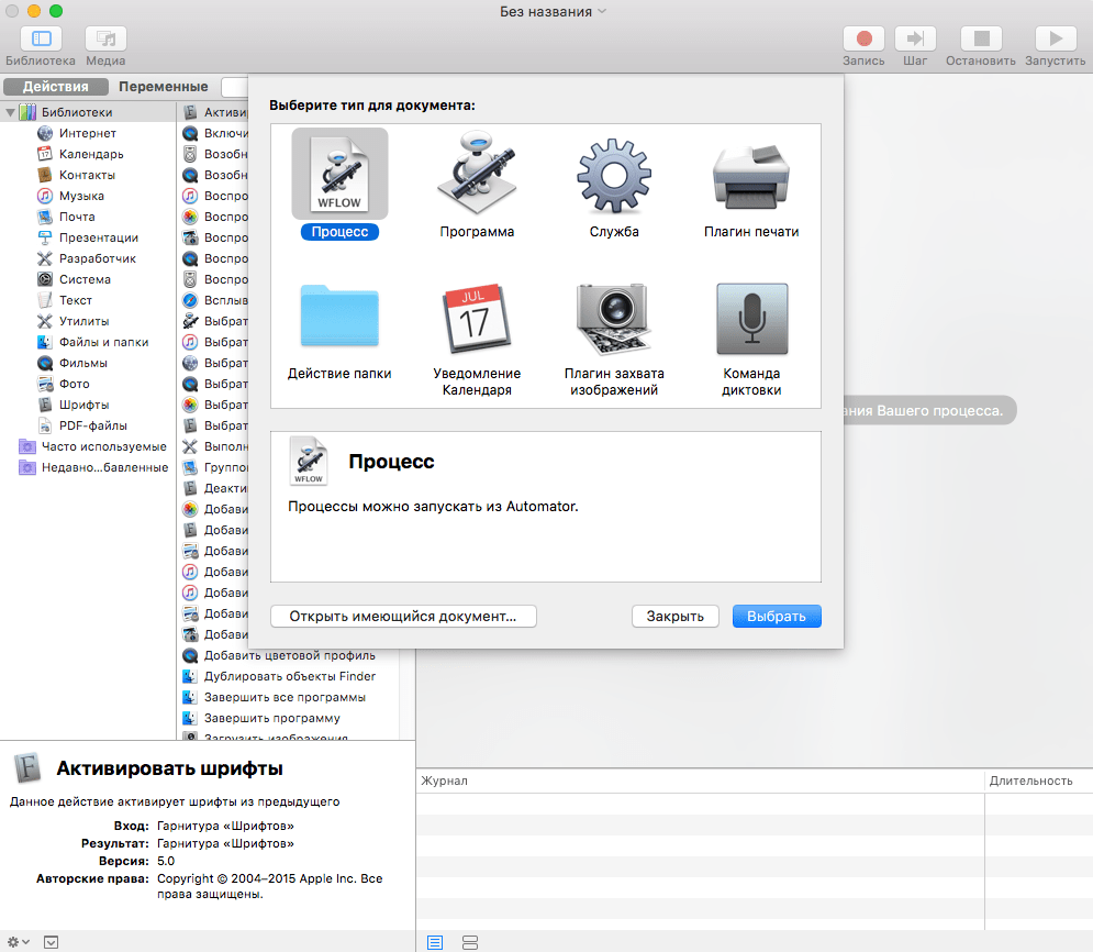 . В Automator выберите опцию Программа и нажмите кнопку Выбрать.