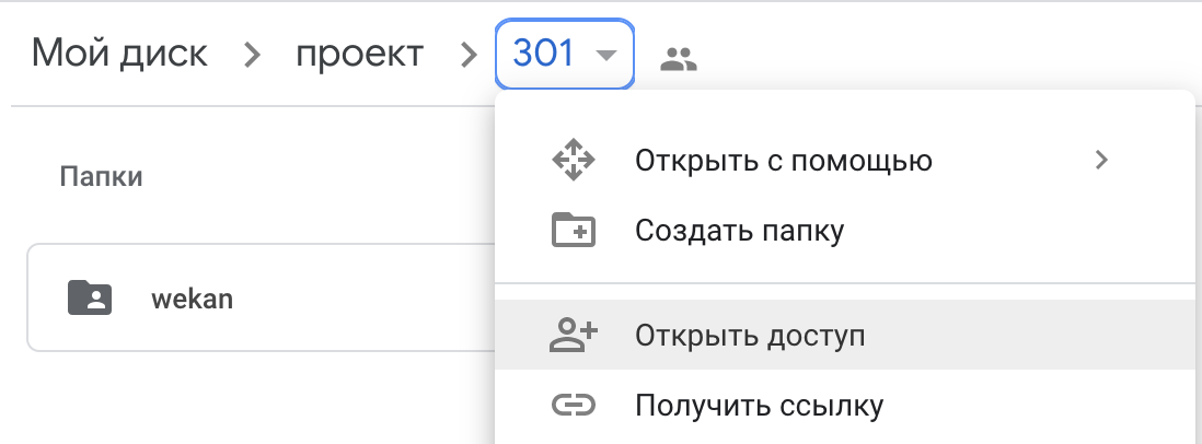 Для настройки общего доступа необходимо нажать кнопку “Настройка доступа”, расположенную в правом верхнем углу: