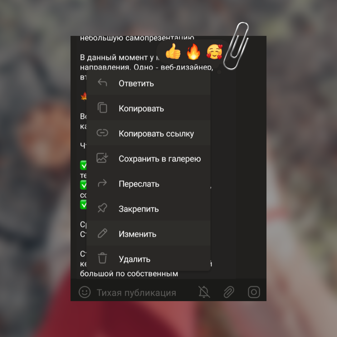 Обязательно включите реакции на вашем канале и в группе — это дополнительный способ взаимодействия с вашей целевой аудиторией. Откройте Настройки > Реакции и выберите ползунки нужных.