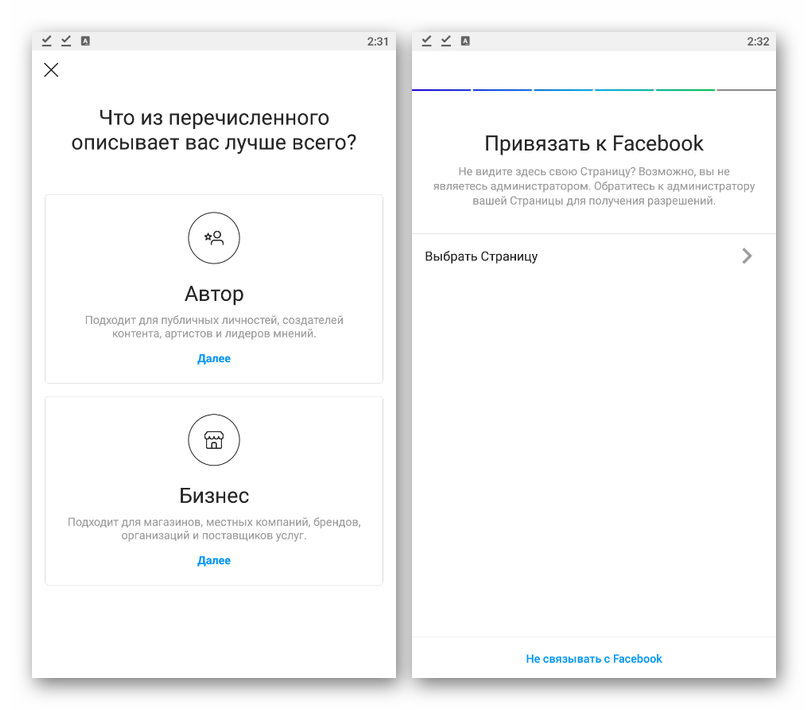 После этого придерживайтесь рекомендаций приложения, на определенном этапе выполнив привязку бизнес-аккаунта на Facebook. Так как вы наверняка уже производили создание бизнес-страницы в Instagram, с данным этапом не должно возникнуть проблем.