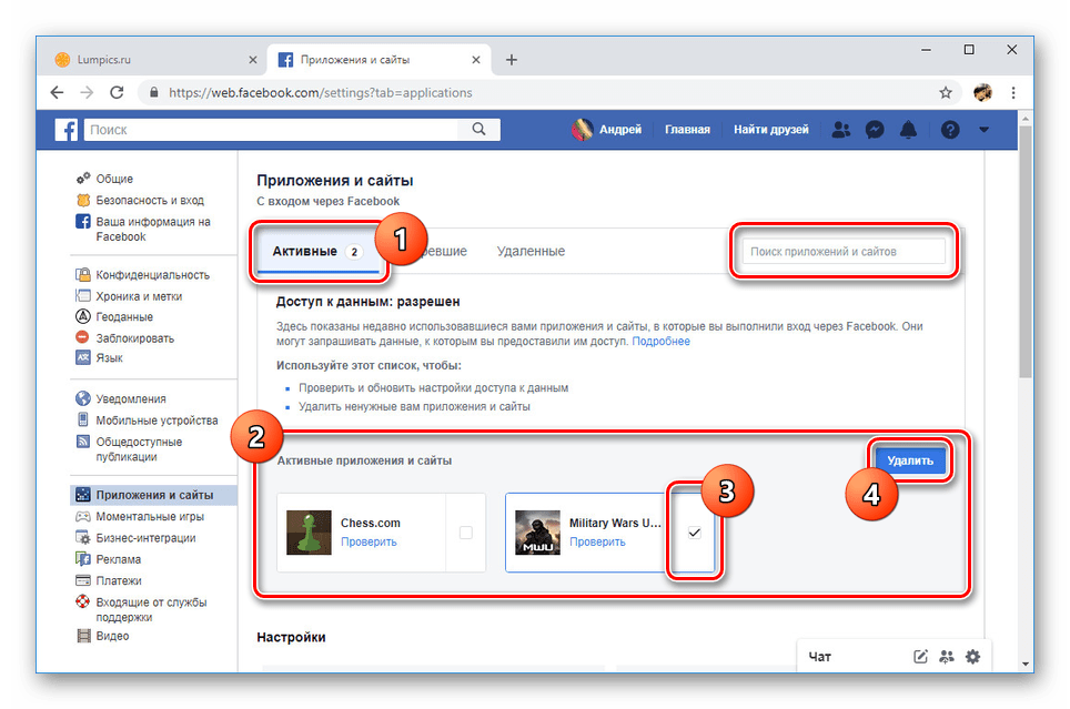 На Фейсбуке есть всего лишь один-единственный способ отвязки игр со сторонних ресурсов и доступен он как из мобильного приложения, так и с веб-сайта. При этом удалению в равной степени подвержены не только игры, авторизация в которых производилась через соцсеть, но и приложения от некоторых ресурсов.