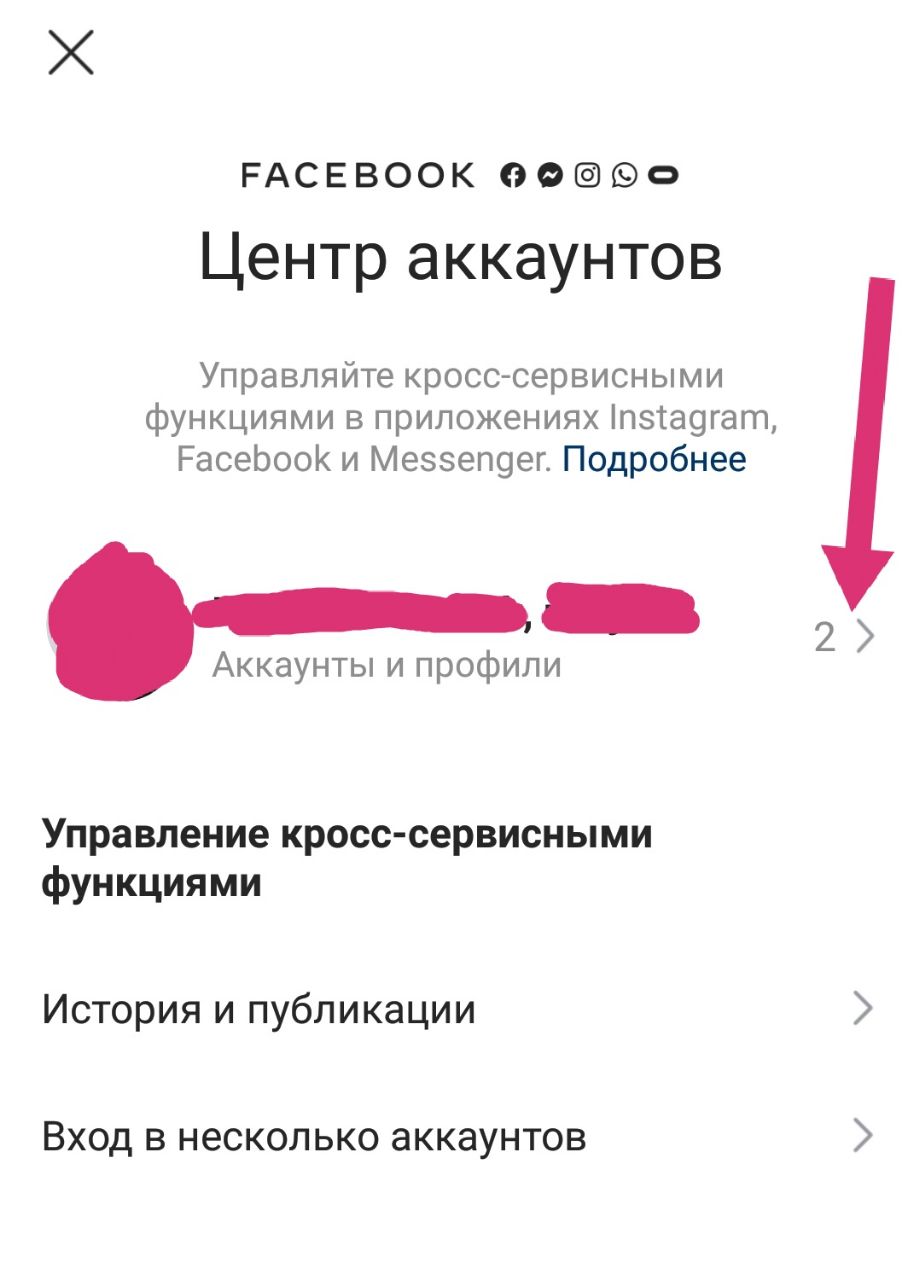 Здесь показаны все аккаунты и профили, связанные друг с другом. Перейдите по стрелке вправо возле цифры.
