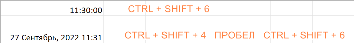- Чтобы вставить текущее время, нажмите Ctrl + Shift + 6