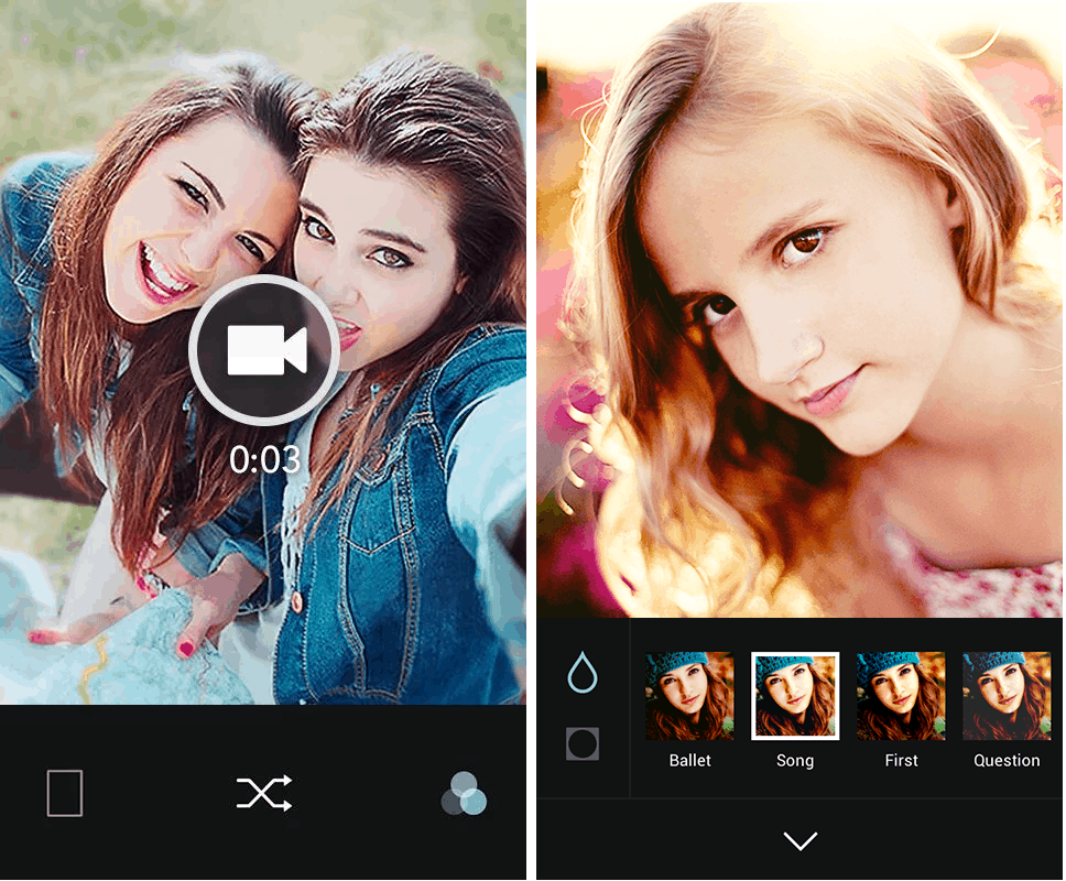 Как и в Retrica, в этом приложении есть возможность установки множества фильтров и эффектов. Кроме того, создатели B612 добавили в функциональность программы таймер, возможность съемки небольших видеороликов с эффектами и непосредственную публикацию снятых фото в социальные сети.