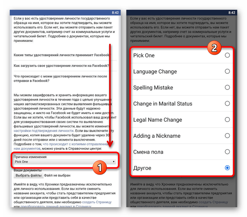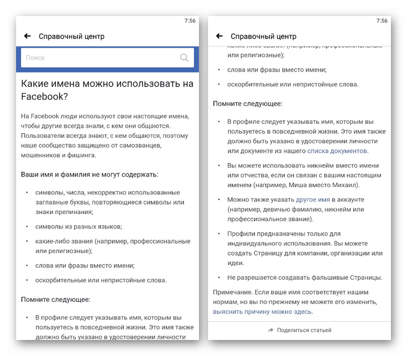 Из-за существования весьма необычных имен и фамилий администрацией Facebook предусмотрен еще один по большей части запасной вариант изменения, заключающийся в использовании внутренней службы поддержки. При этом данный способ потребует от вас не просто указать реальные данные, но и предоставить доказательства в виде документов, удостоверяющих личность.
