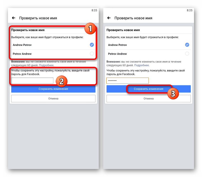 Администрация Facebook предупреждает всех пользователей, что смена имени возможна только раз в 60 дней. Следовательно, вы не сможете подавать заявку на повторную смену имени, если с момента последнего изменения прошло менее 60 дней.