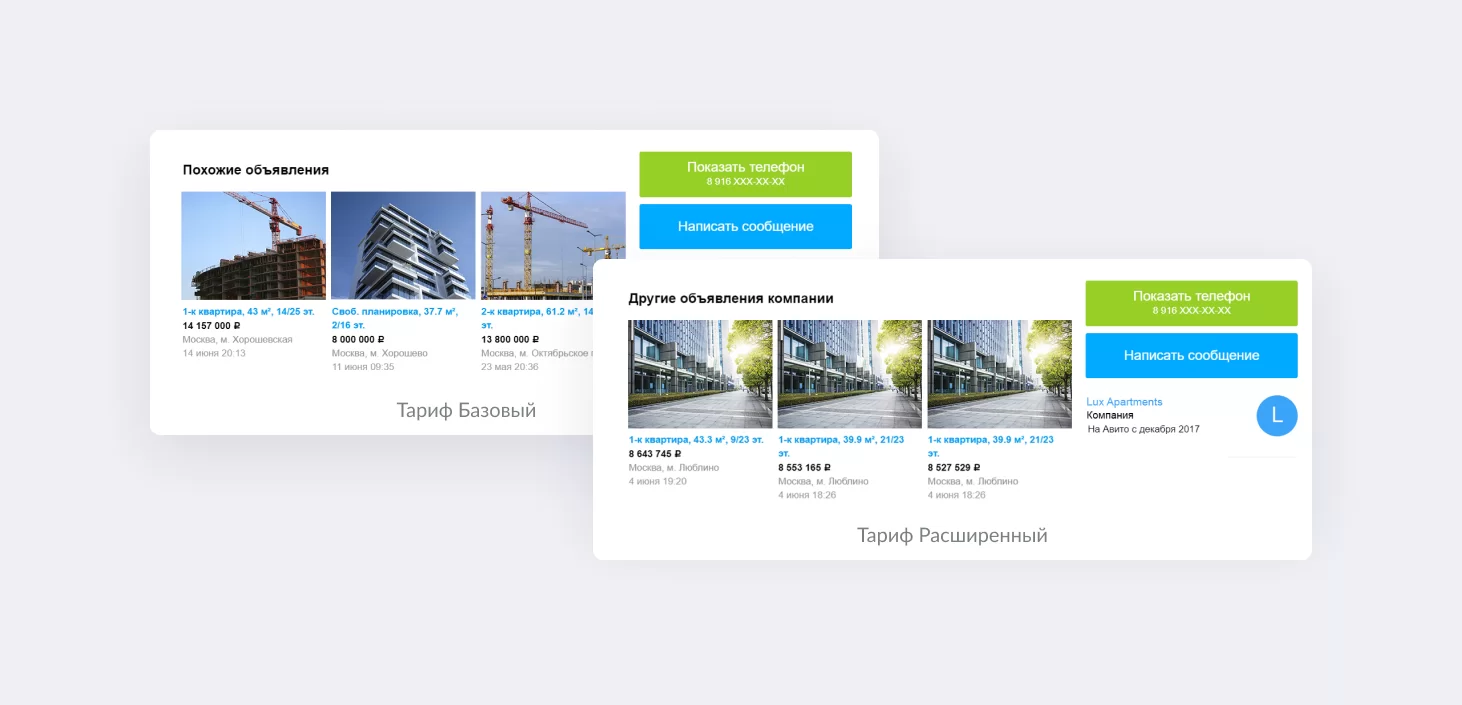 Расширенный набор услуг позволяет разместить в блоке рекомендаций только собственные объявления — они отображаются под карточкой
