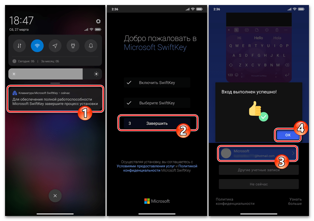Дополнительно. В некоторых случаях после первого своего открытия приложение-клавиатура путём отображения уведомления в системной шторке требует проведения дополнительных манипуляций, к примеру, регистрации/авторизации в экосистеме разработчика. Тапните по оповещению, чтобы оно не мешало вам в будущем и, по своему желанию, удовлетворите или отклоните запросы софта. На процесс выполнения модулем ввода своих основных функций в большинстве ситуаций ваше согласие следовать рекомендациям создателей инструментария никаким образом не повлияет.