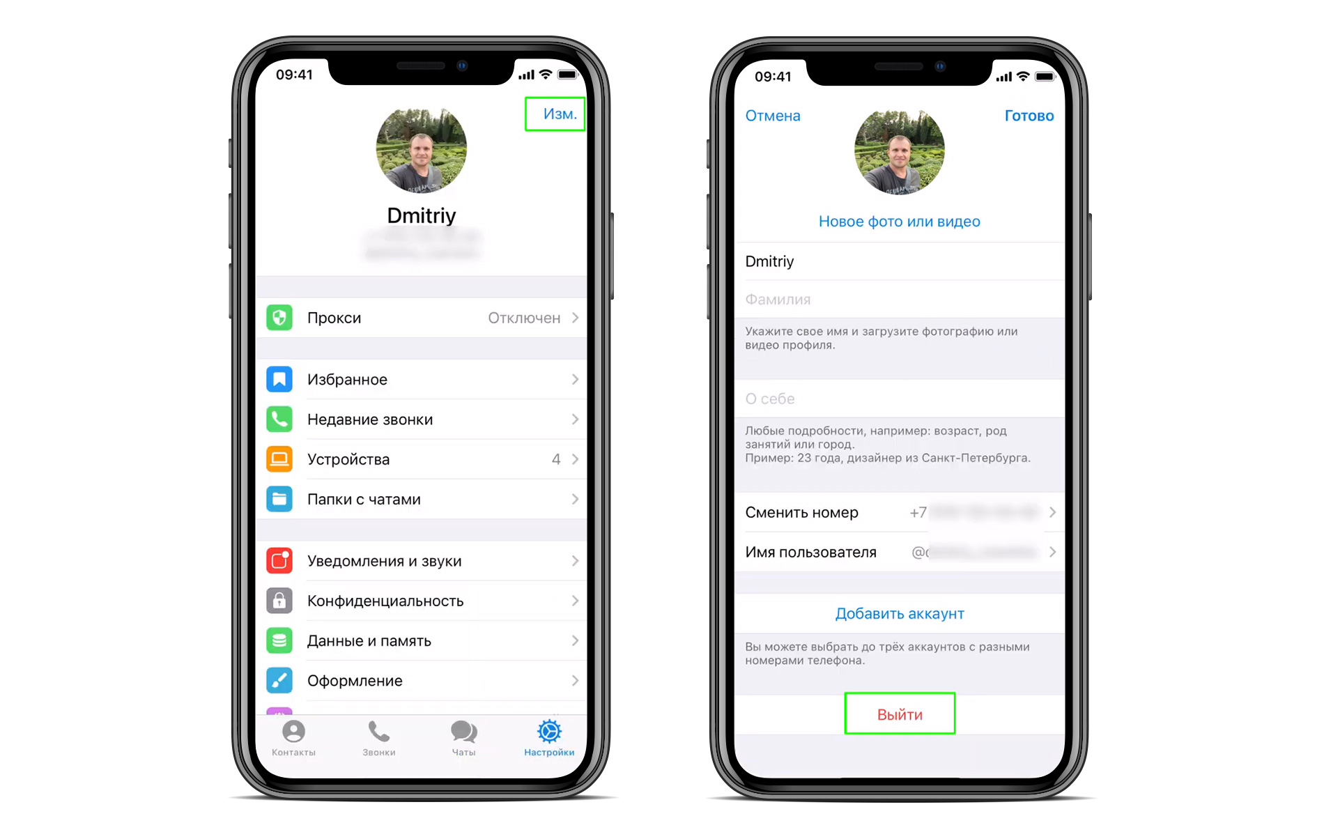 Смена номера телефона без замены устройства и переустановки приложения на платформах Android и iPhone не имеют различий. Для этого необходимо: