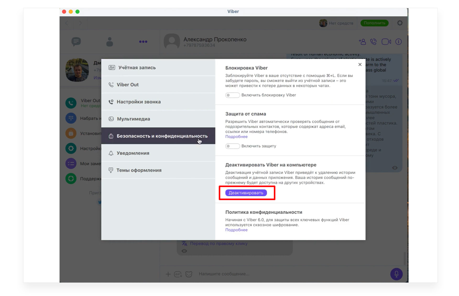 «Компьютерная» вариация программы привязана к мобильной, однако, чтобы ввиду смены контактного номера клиента не было затруднений, Viber на компьютере следует «приостановить» на небольшой срок.