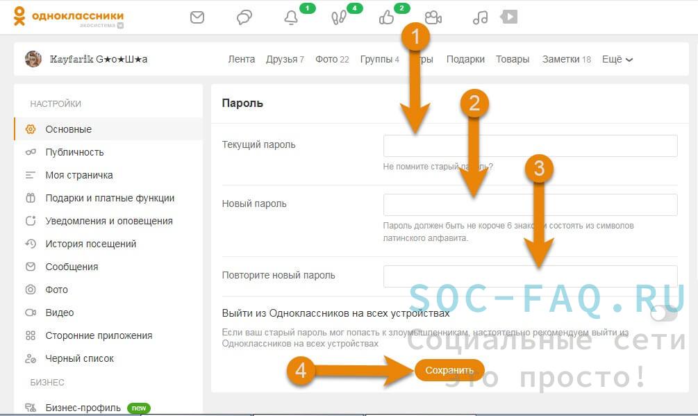 Как в Одноклассниках поменять пароль, если не помнишь старый?
