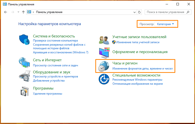 Как изменить время на Виндовс 10 при помощи «Панели управления»