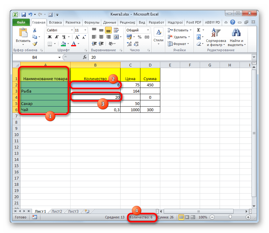 Самый простой способ решить поставленную задачу в выделенном диапазоне – это посмотреть количество в строке состояния. Для этого просто выделяем нужный диапазон