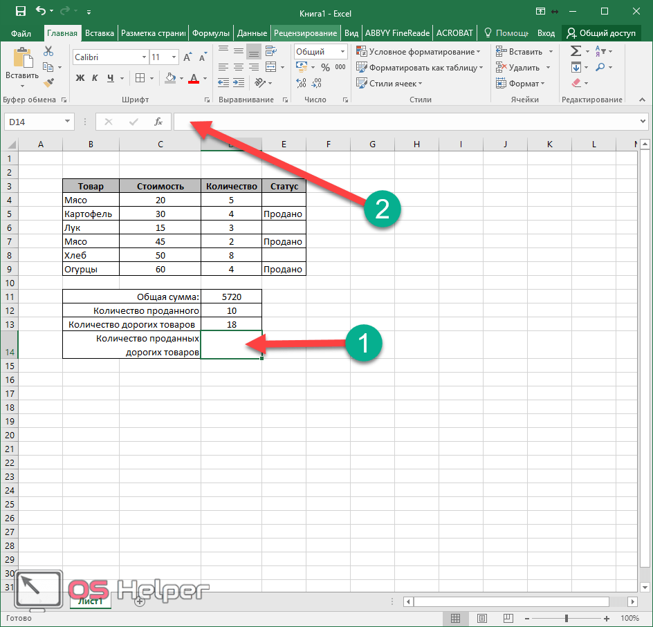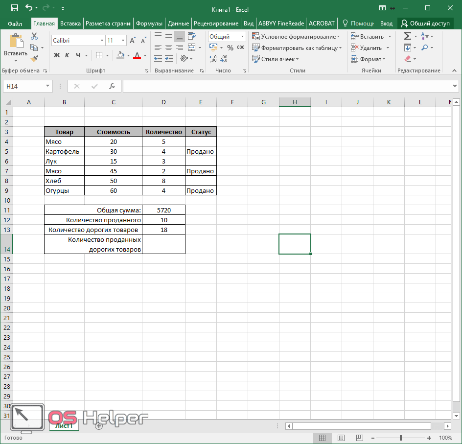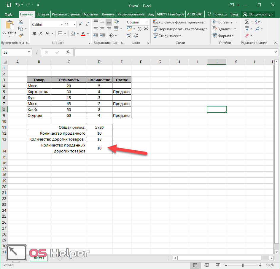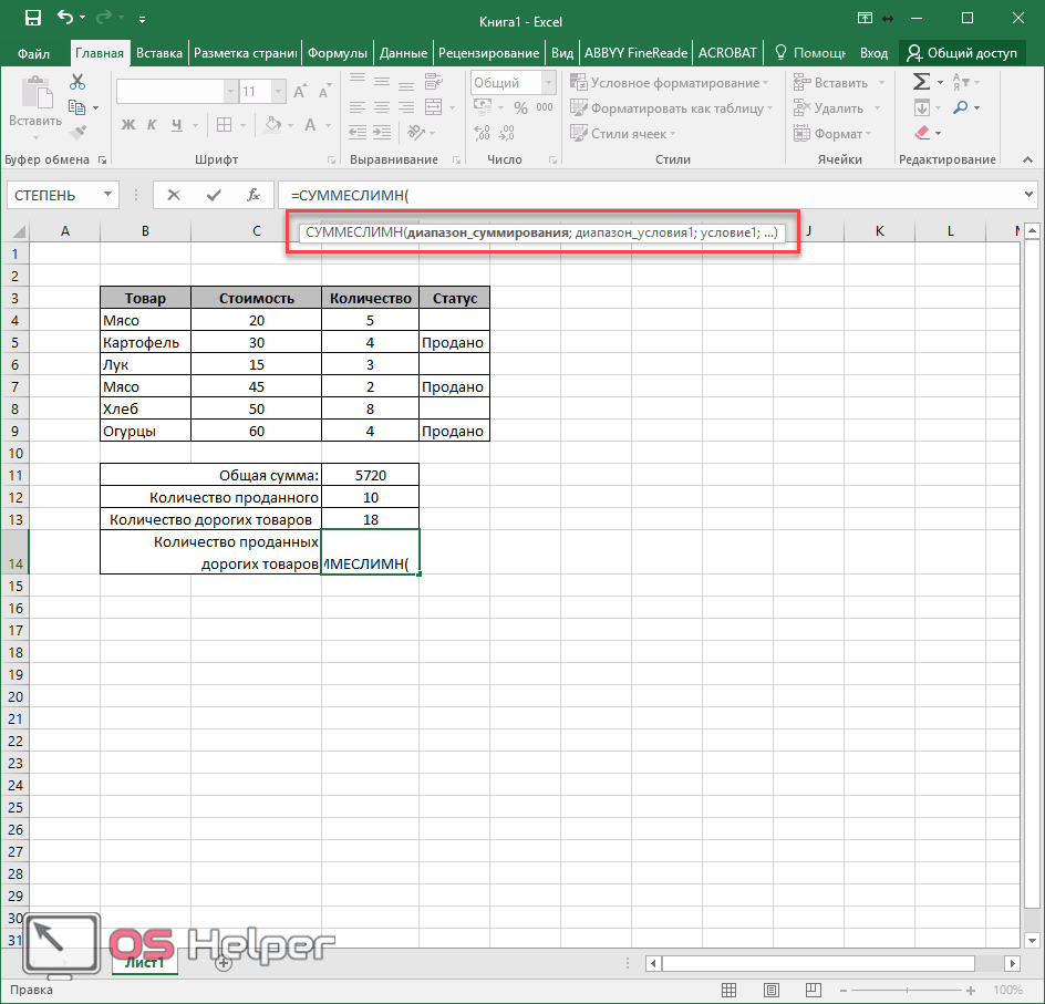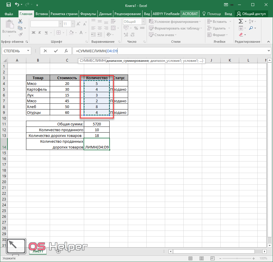 Но иногда всё намного сложней. Например, могут быть случаи, когда нужно посчитать в столбце сумму всех одновременно и дорогих, и проданных продуктов. Рассмотрим, как правильно составить формулу для этой ситуации.