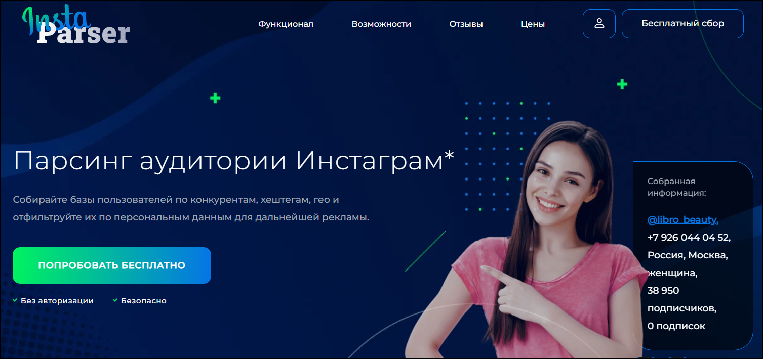 Инстапарсер фильтруют готовую базу по множеству параметров.