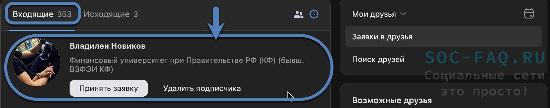 - Исходящие заявки ВК — всем этим людям Вы отправили заявку на добавление в друзья, но они не приняли её, оставив Вас в подписчиках;