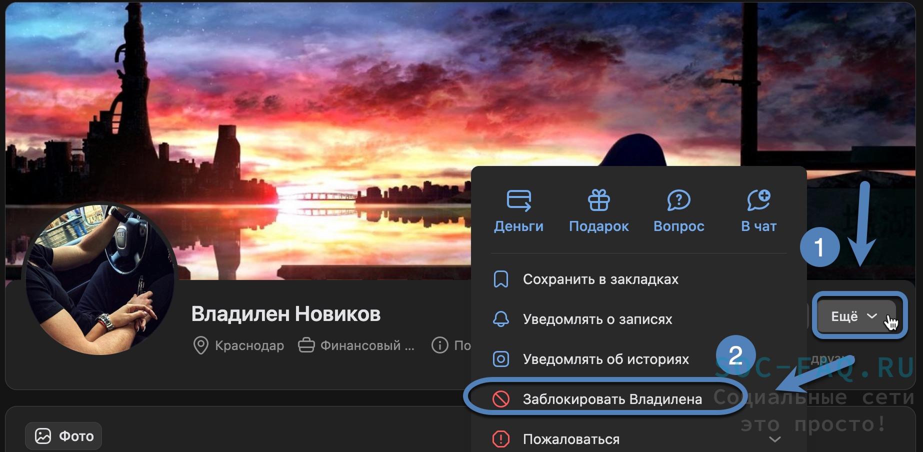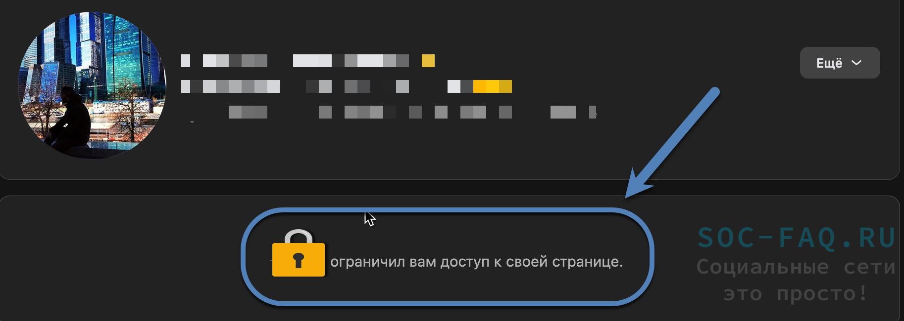 Данная функция предусматривает полное ограничение доступа к вашему аккаунту заблокированному пользователю.