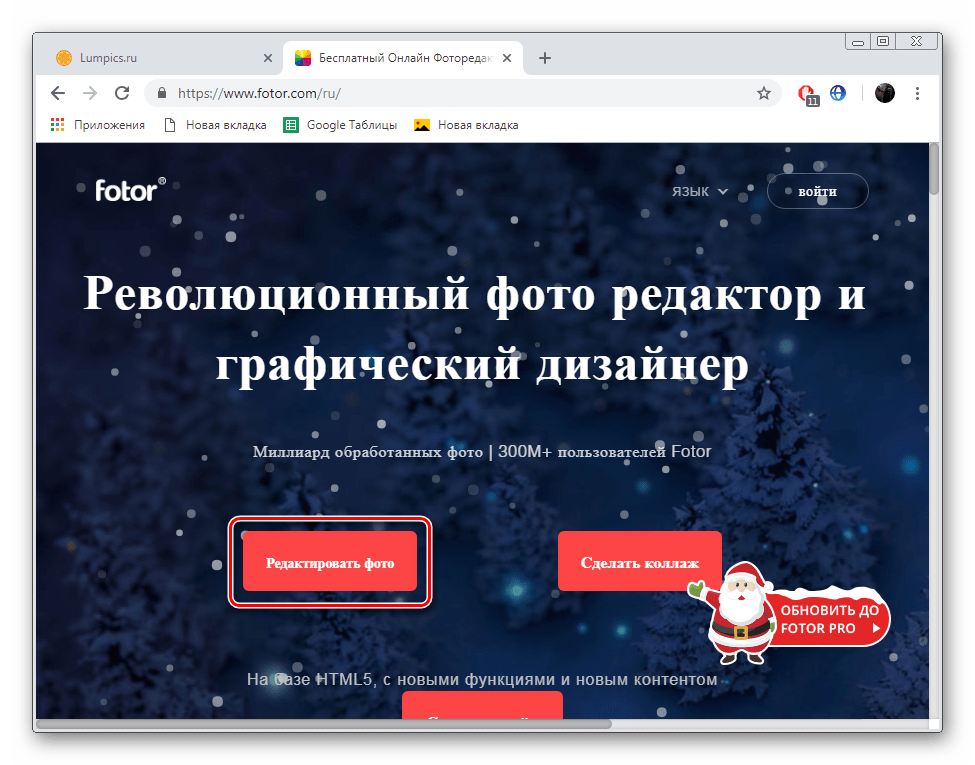 - Находясь на главной странице Fotor, щелкните левой кнопкой мыши на «Редактировать фото».