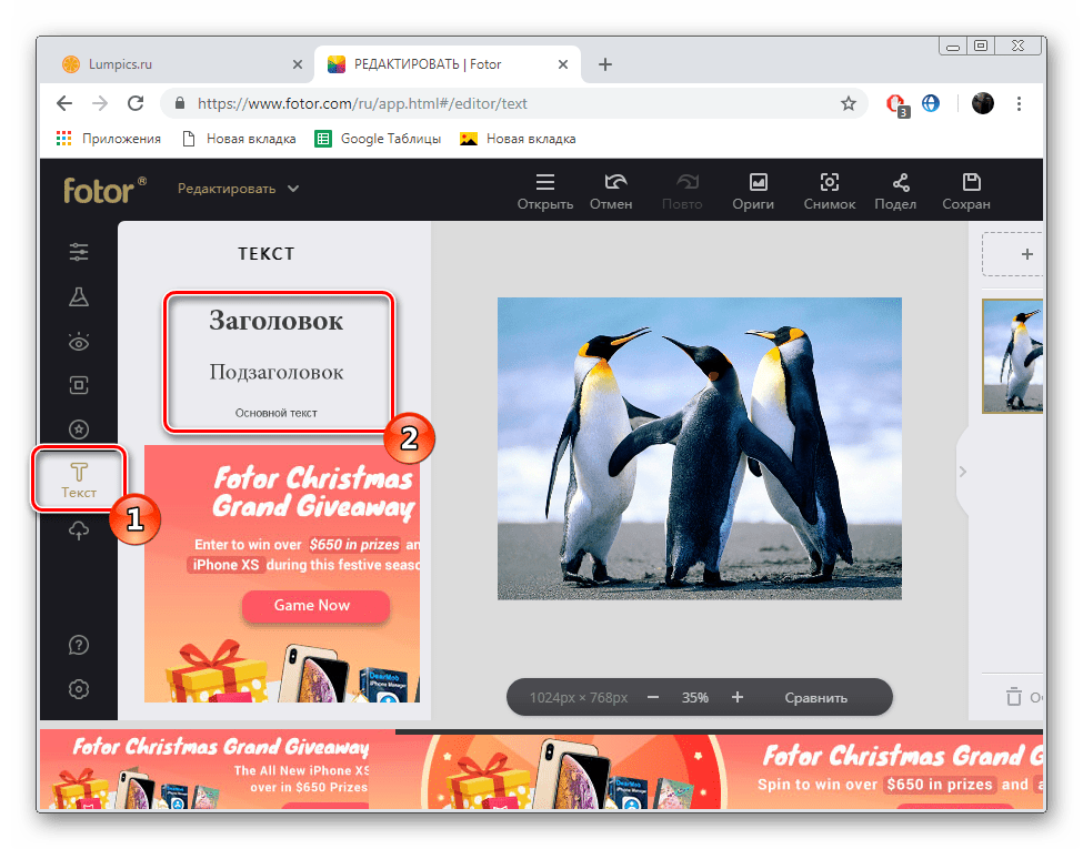 Как и Fotoump, сайт Fotor включает в себя еще большое количество других возможностей, с использованием которых справится даже начинающий юзер. Поэтому не стесняйтесь и задействуйте остальные инструменты, помимо добавления надписи, если это сделает вашу фотографию лучше.