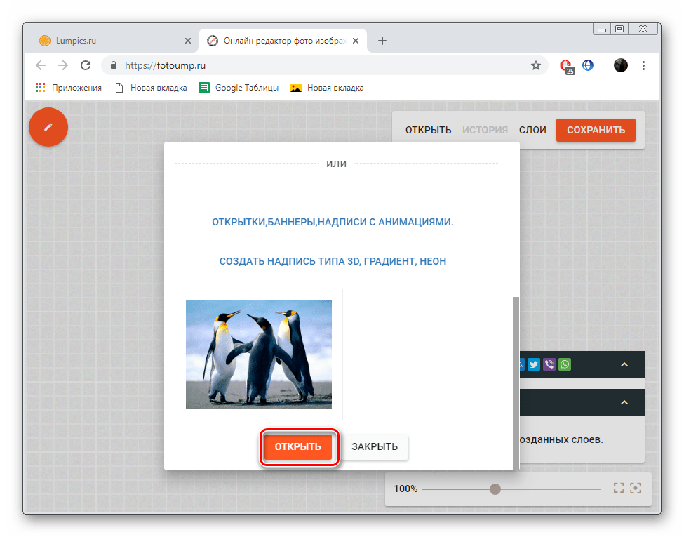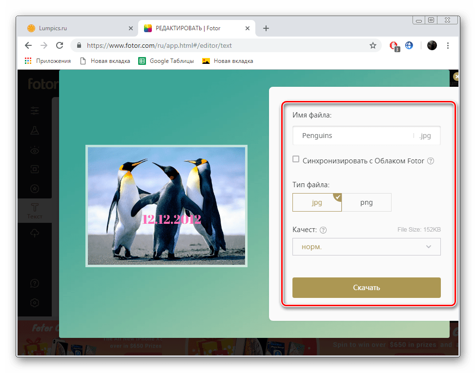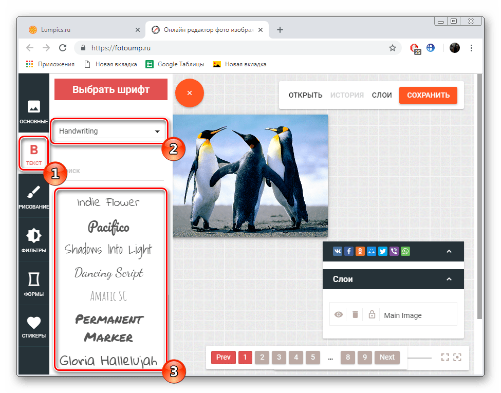Fotoump – онлайн-редактор графических изображений, который нормально взаимодействует с большинством популярных форматов. Помимо добавления надписей вам доступно множество самых разнообразных функций, однако сейчас мы предлагаем остановиться только на одной из них.