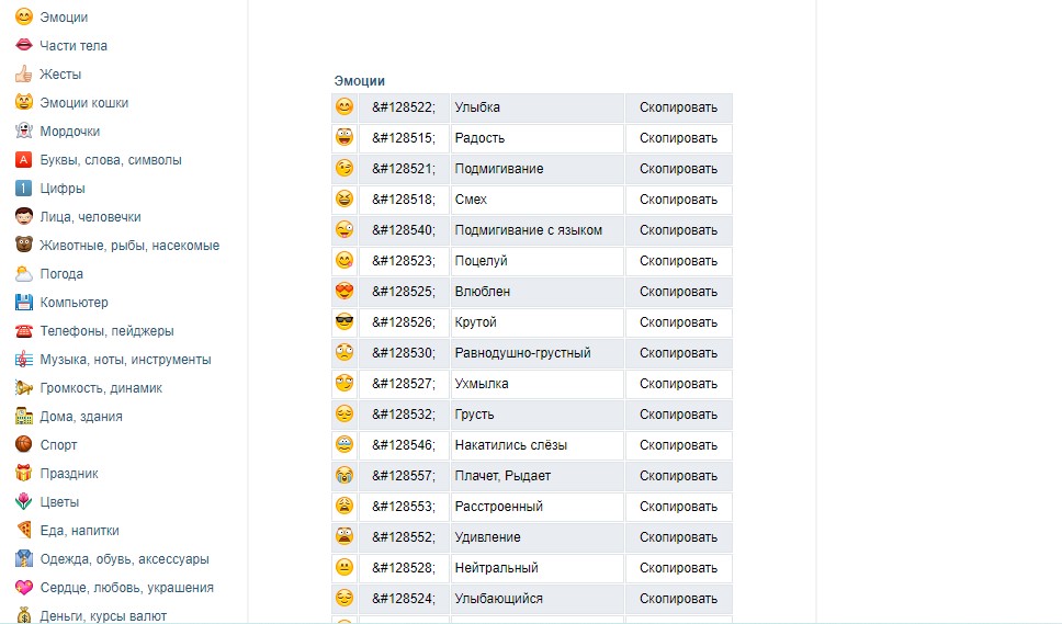 - Нужно скопировать код понравившегося смайлика, обязательно все символы, включая решетку, точку с запятой и знак амперсанда.