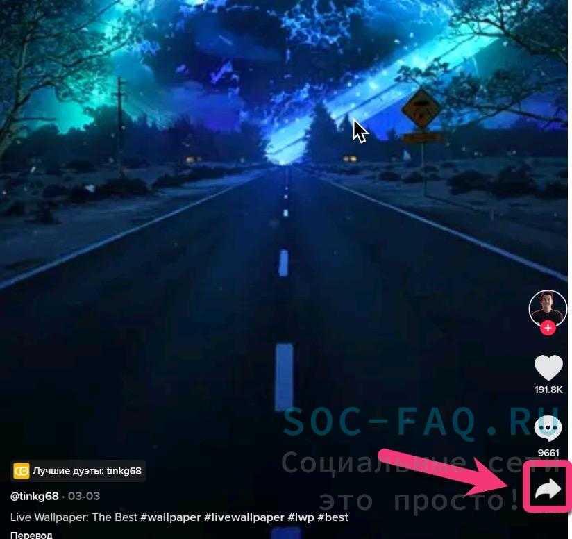 - Откройте TikTok и нажмите на значок «Поделиться»;
