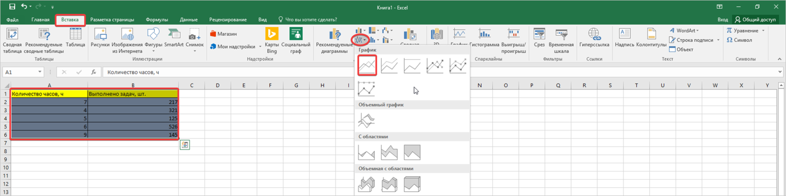 Итак, это был краткий алгоритм того, как создать график в Excel, теперь более подробно на примерах: