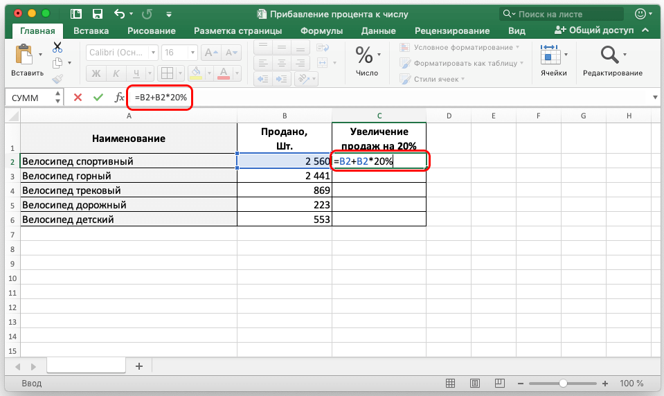 Как в Excel прибавить проценты к числу: секреты расчетов