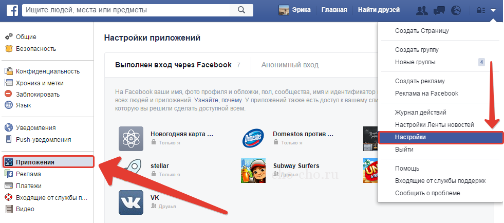 - В своей учетной записи в FB переходим в настройки, выбираем пункт «Приложения».