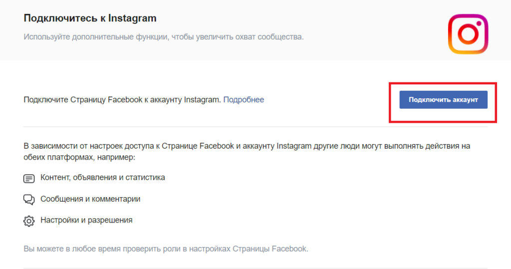 Как происходит синхронизация Фейсбука и страницы Инстаграма