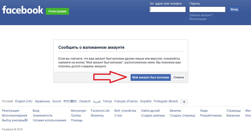- В правой части окна найдите клавишу «Войти через Фейсбук»;