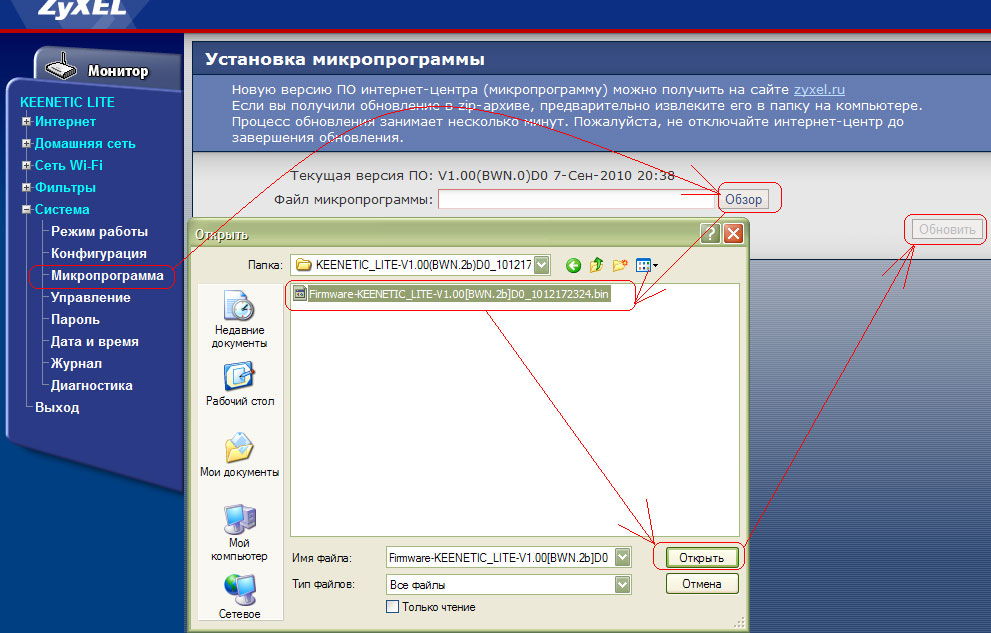 Обновление прошивки на Zyxel (через загрузку файла с сайта)