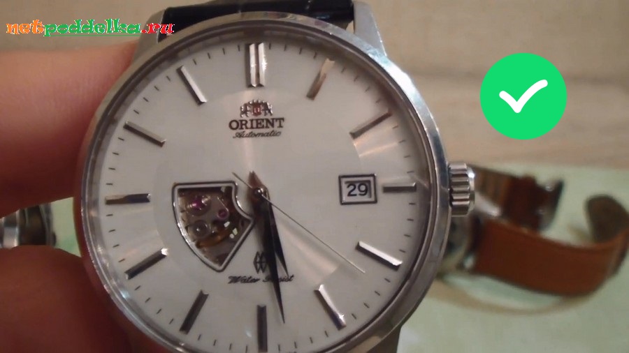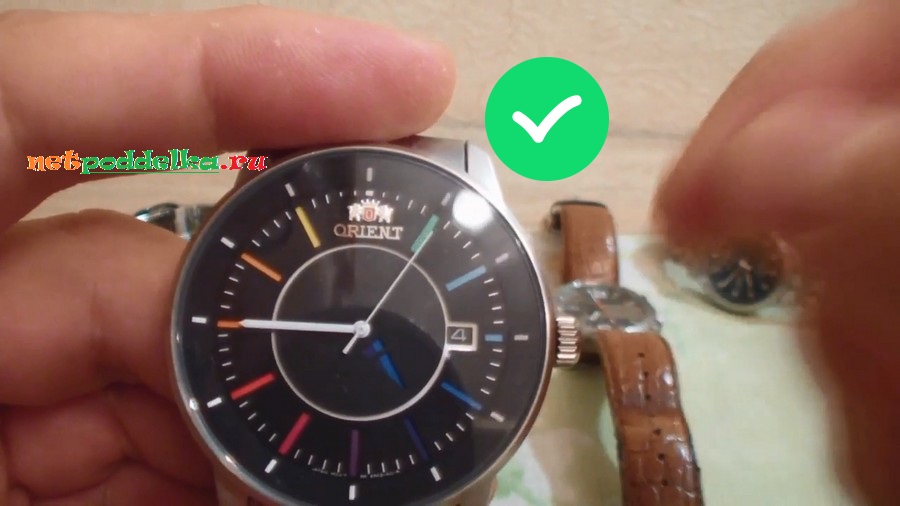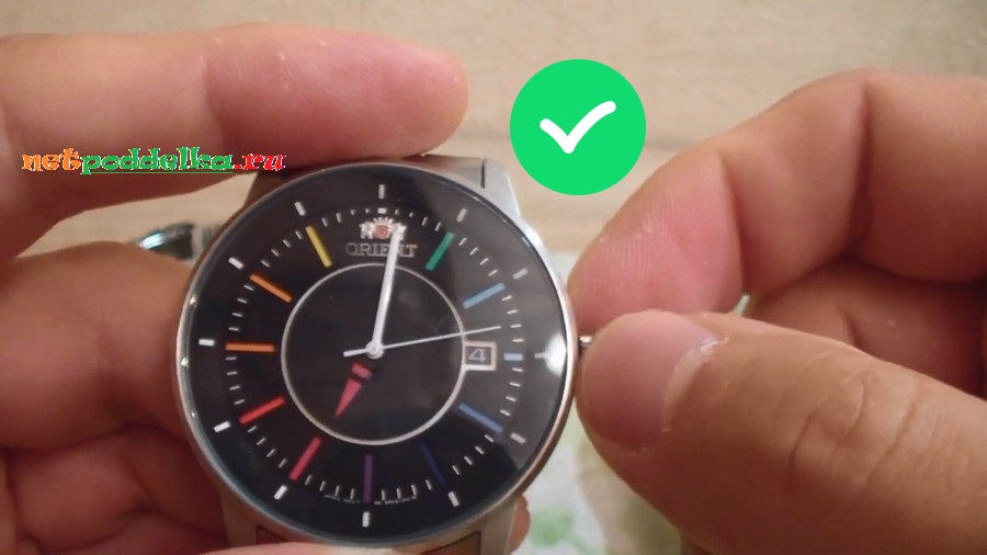 Есть один надежный метод как отличить подделку Ориент. Для этого нужно перекрутить стрелки до конца смены даты и дня недели, вернув их после этого на «0 часов». У подделки Orient ничего не произойдёт, а вот в оригинальной версии индикация обязательно сдвинется на день вперёд. Подобной функции нет только у слишком старых моделей производителя, которым несколько десятков лет. Во всех остальных случаях отсутствие перескока – это признак, что в руках фейковый экземпляр.