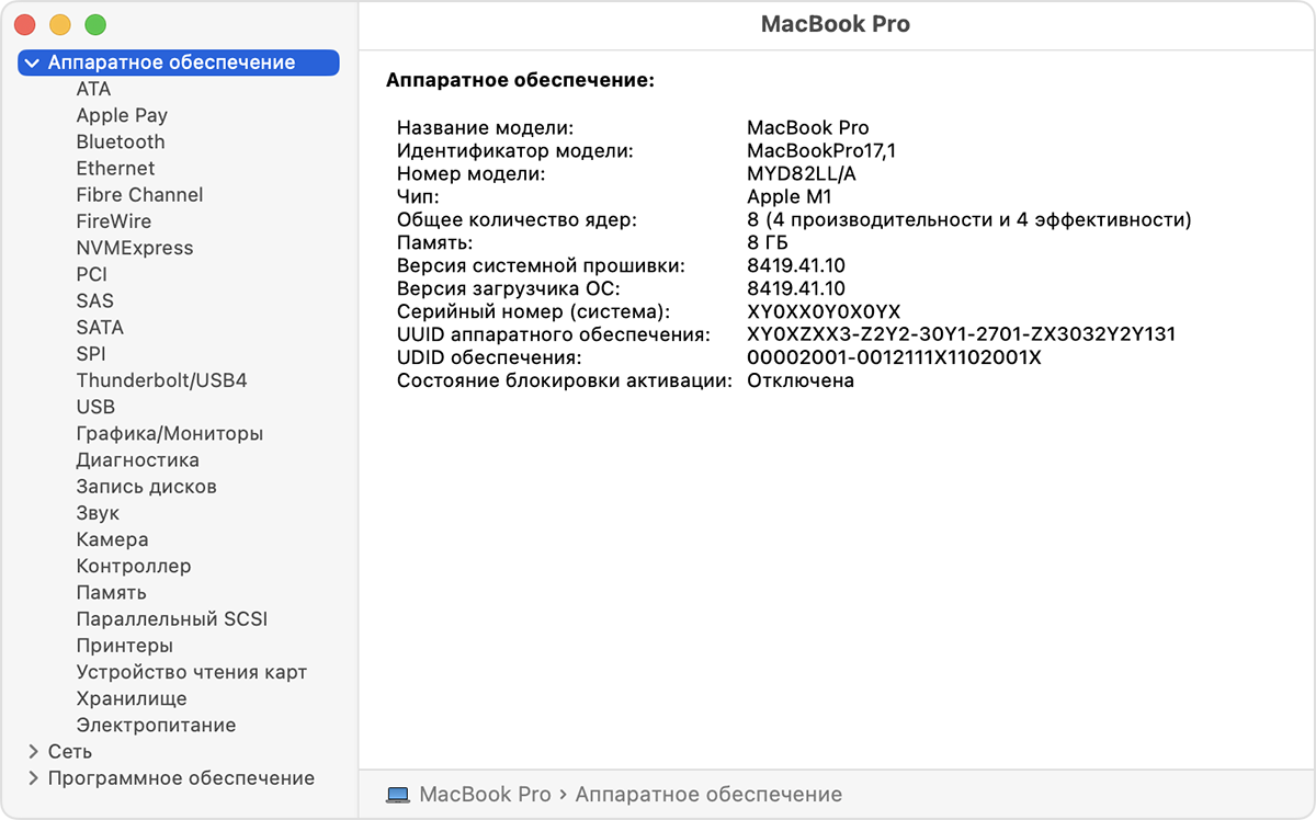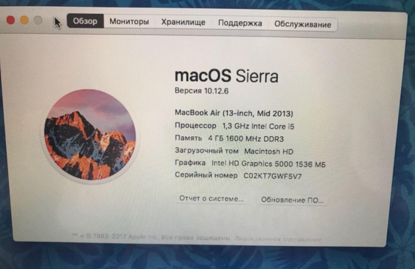 Откройте меню  → Об этом Mac → вкладка «Обзор» → Отчёт о системе…