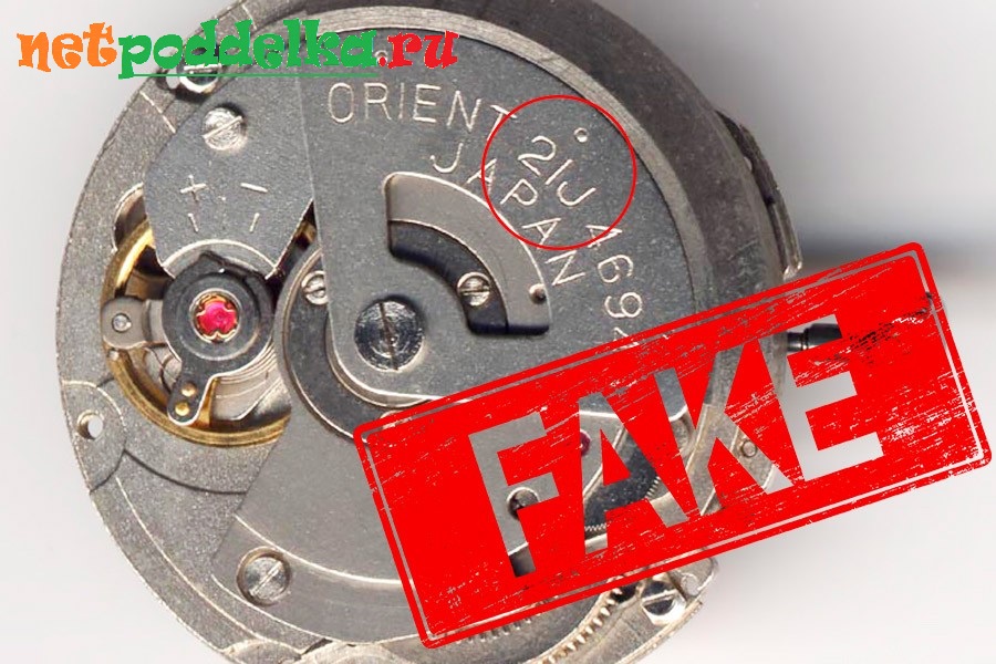 Раньше встретить подделку японских часов Ориент было редкостью. Сейчас мошенники заполонили рынки фальсификатами. Самые качественные подделки можно обнаружить лишь при полной разборке механизма. Заводские детали, такие как цапфы оси, ножки циферблата, вилки автоподзавода, рычаги перевода отличаются эксцентриками на креплениях. Также в репликах в надписи 21J. часто отсутствует точка.