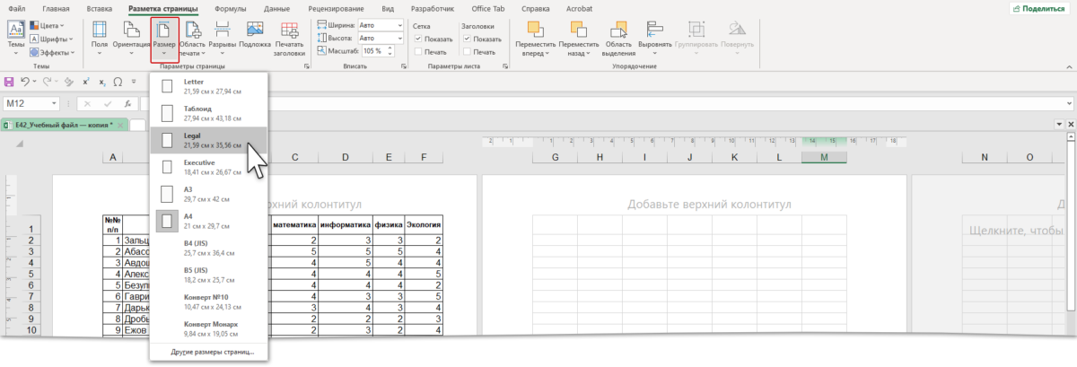 Как уменьшить (сжать) большую таблицу для печати на одном листе формата А4