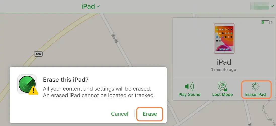 erase ipad on find my