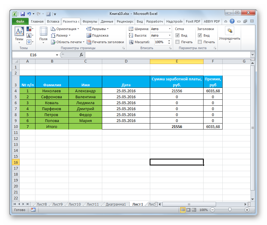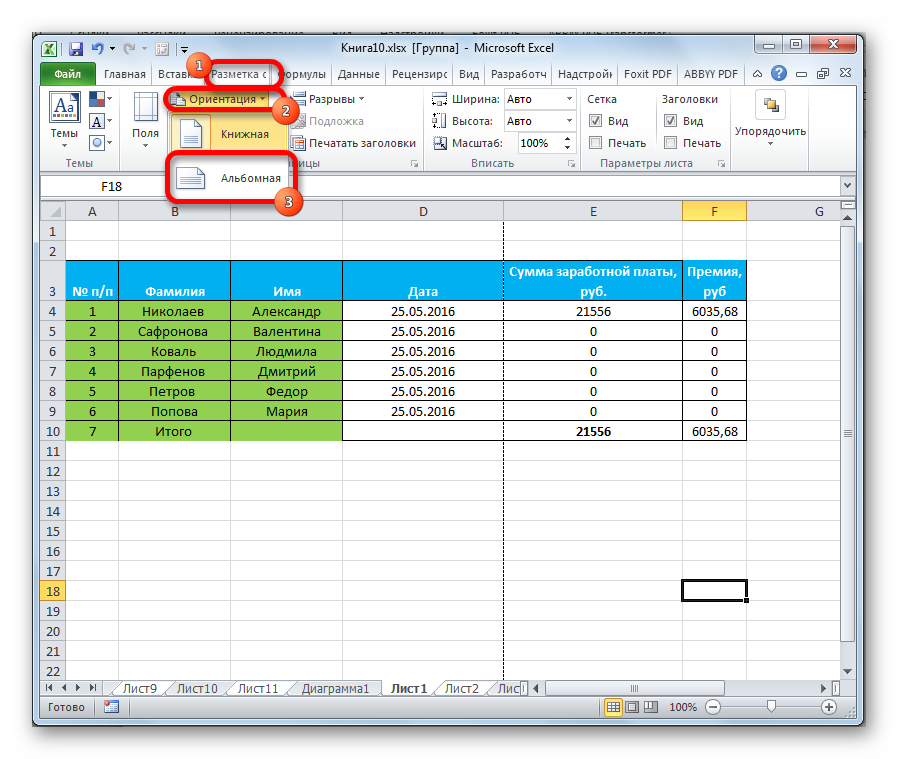 После этого все выделенные листы будут иметь указанную выше ориентацию элементов.