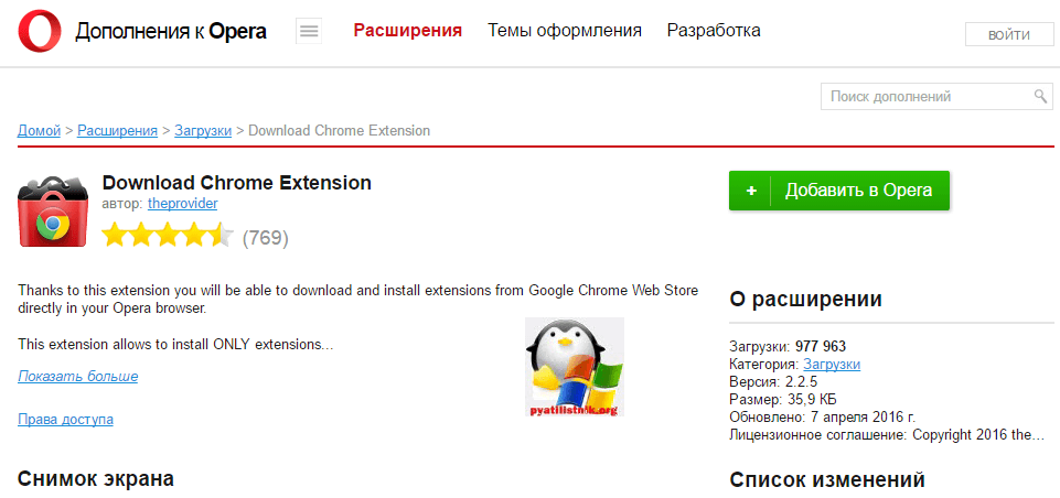 В современных же версиях браузера, так же можно установить дополнительное расширение. Называется оно Download Chrome Extension. Благодаря этому расширению вы сможете теперь устанавливать различные плагины из гугл хром в Opera, добавляете его.