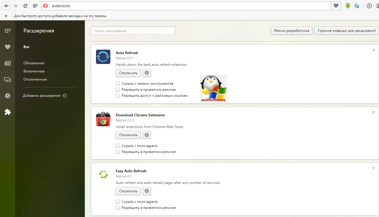 После чего вам станет доступно автоматическое обновление страницы в opera.