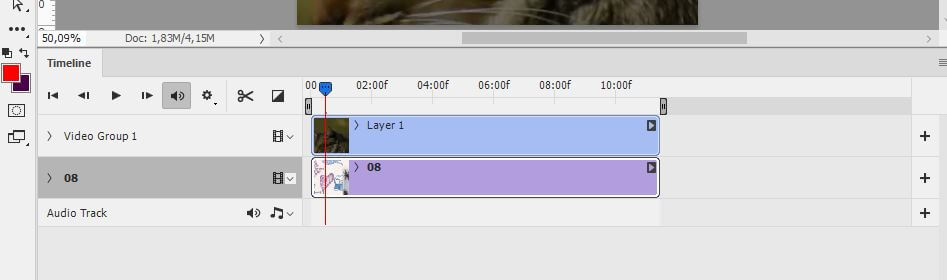В окне Timeline выравните фон с картинкой со слоем видео, чтобы фрагменты стали одной длины: