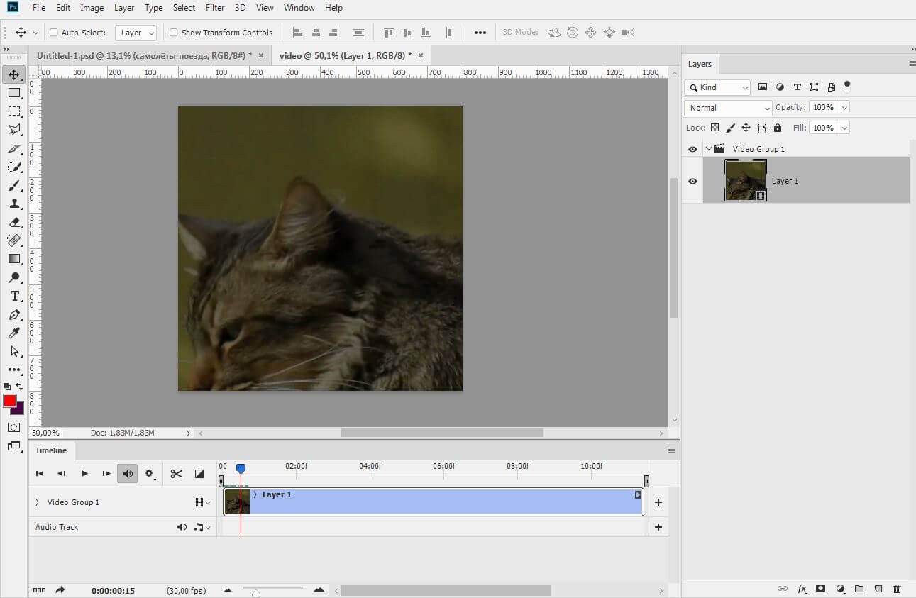 Откроем в Фотошопе заранее подготовленное видео или гифку. При этом автоматически откроется окно Timeline внизу экрана.