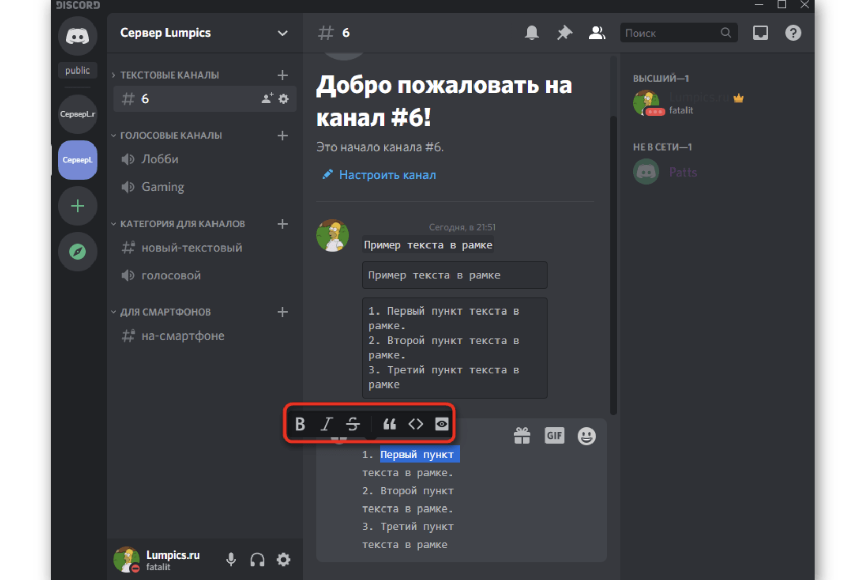 В Discord существует ряд возможностей для форматирования текста в сообщениях. Это помогает выделить важные фрагменты и сделать текст более читабельным.