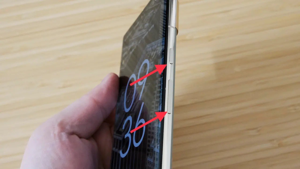 2. Нажмите и удерживайте одновременно две кнопки: кнопку уменьшения громкости и кнопку включения/выключения экрана.