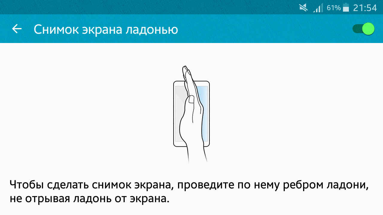 Инструкция по настройке смартфона SAMSUNG для «Снимка экрана ладонью».