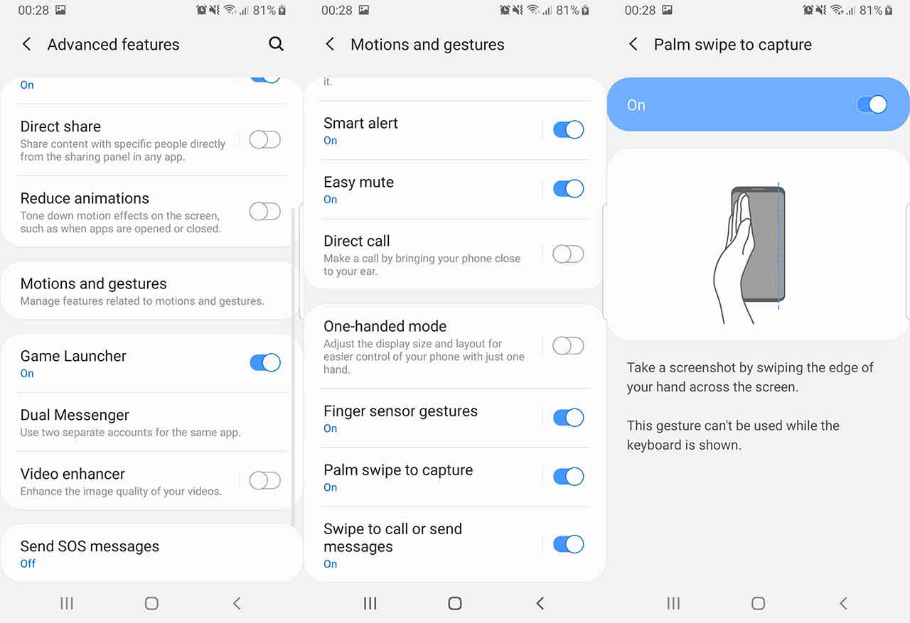 Once this gesture is enabled, you can take screenshots by swiping your palm across the screen.