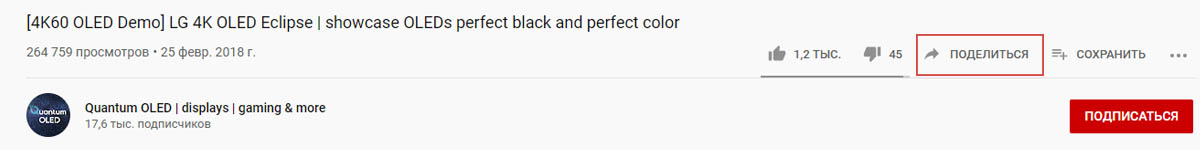 Нажмите кнопку Поделиться прямо под видео.