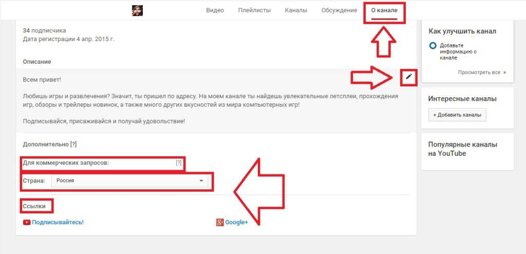 ● На страницу описания канала. Это делает все очень просто: добавьте столько ссылок, сколько вам нужно. Сначала введите имя, а затем адрес, чтобы у ссылки был красивый анкор, то есть текст. Но этот вариант для более-менее популярных каналов, так как мало кто заходит на эту страницу для новичков. По сути, подписчики нажимают и нажимают на них, а не случайные зрители.