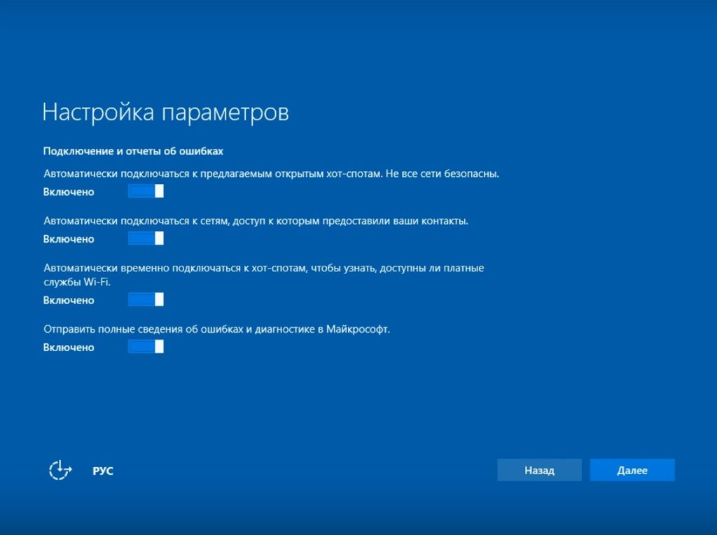 Отключение телеметрии в Windows 10 во время установки