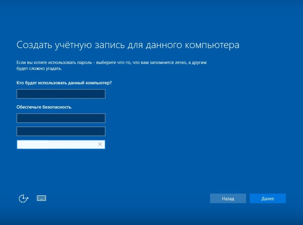 - Появилось окошко ввода персональных данных. Укажите имя пользователя и название ПК. По окончании нажмите кнопку «Далее».